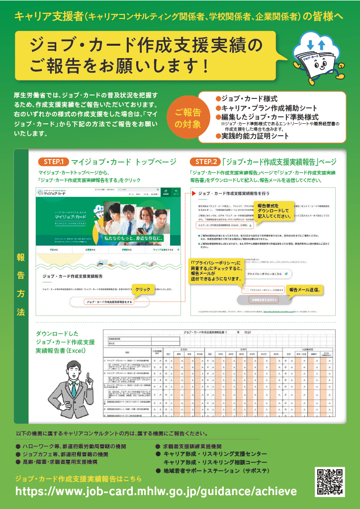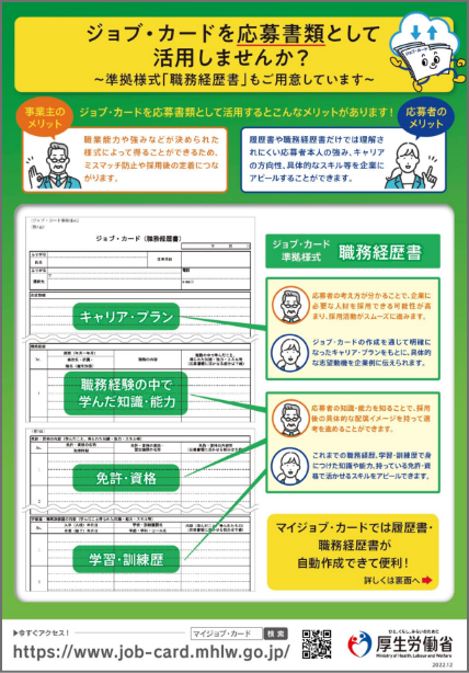 ポスター・リーフレット等、ジョブ・カードの普及を進めるうえで役立つ資料を掲載しています。